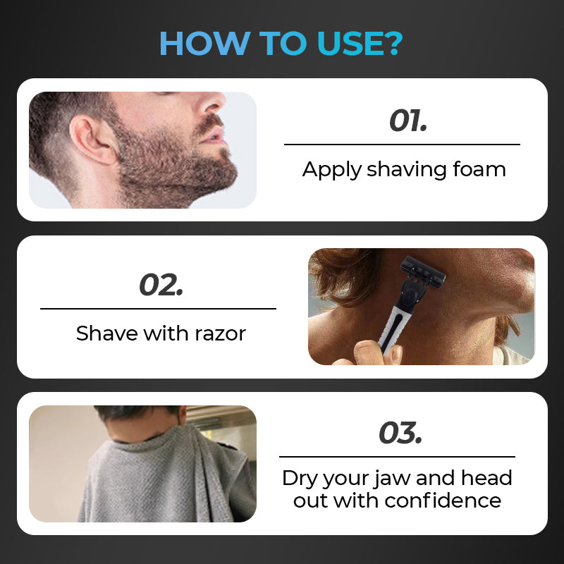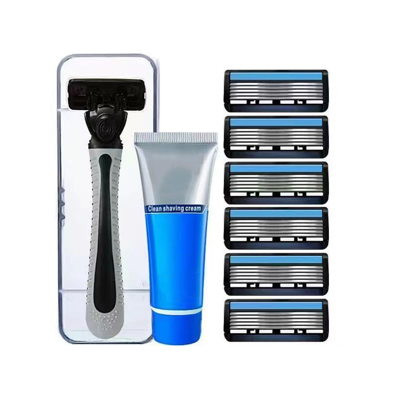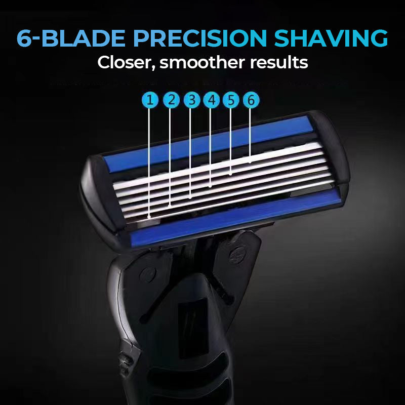 Progresywny system sześciu ostrzy: Dzięki sześciu precyzyjnie wyrównanym ostrzom system ten zapewnia progresywne golenie, minimalizując szarpanie skóry i zapewniając wyjątkowo dokładne golenie. Ukośne ustawienie ostrzy dostosowuje się do konturów twarzy, a zakrzywione ostrza w kształcie litery L zapewniają równomierny rozkład nacisku, gwarantując gładkie golenie.
