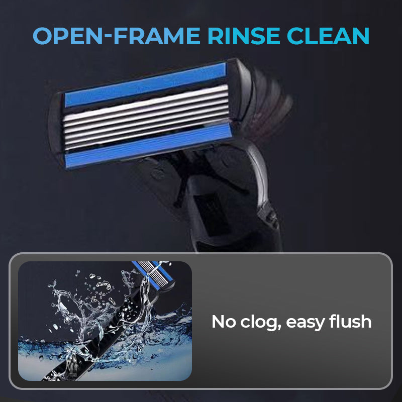 Otwarta konstrukcja ostrzy ułatwia płukanie: ostrza w kształcie litery L mają otwartą konstrukcję, która umożliwia swobodny przepływ wody podczas płukania, natychmiast usuwając resztki włosów i pozostałości po goleniu. Taka konstrukcja skutecznie zapobiega zatykaniu się, zapewnia optymalną wydajność i gwarantuje higienę oraz łatwość konserwacji po każdym goleniu.