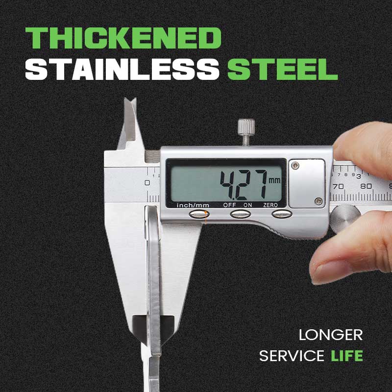 ZAGĘSZCZONA STAL NIERDZEWNA – Zastosowanie wzmocnionego materiału ze stali nierdzewnej zwiększa wagę i wytrzymałość stali nierdzewnej, dzięki czemu klucz jest odporny na odkształcenia i łatwy w obsłudze. Jednocześnie nie rdzewieje łatwo i jest przyjazny dla środowiska.