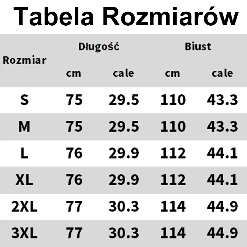 Rozmiary: S, M, L, XL, 2XL, 3XL