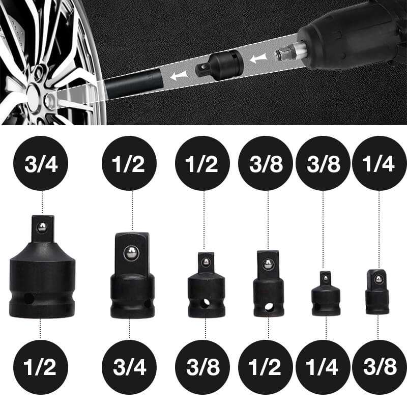 Ten kompleksowy zestaw adapterów do nasadek udarowych zapewnia łatwą konwersję i wyjątkową kompatybilność, spełniając wszystkie Twoje wymagania. Nadaje się do stosowania z wkrętakami, kluczem płaskim i kluczem zapadkowym, może być używany wraz z narzędziami pneumatycznymi, elektrycznymi lub napędowymi.