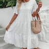 Ta sukienka o pochlebnej sylwetce w kształcie litery A i okrągłym dekolcie odsłaniającym szyję jest wykonana z oddychającego, elastycznego materiału, który zapewnia wygodne dopasowanie. Od brunchu po wesela, ta wszechstronna sukienka z łatwością łączy się z dowolnymi dodatkami.