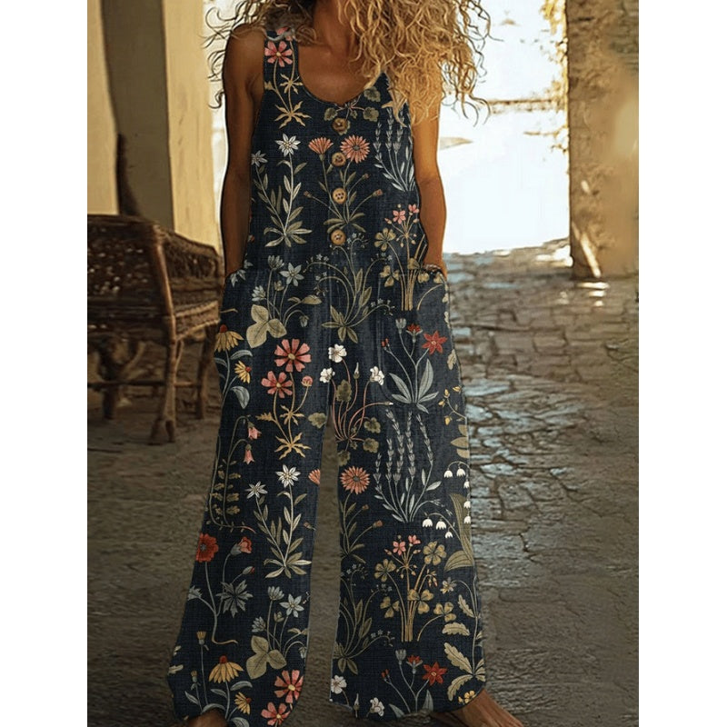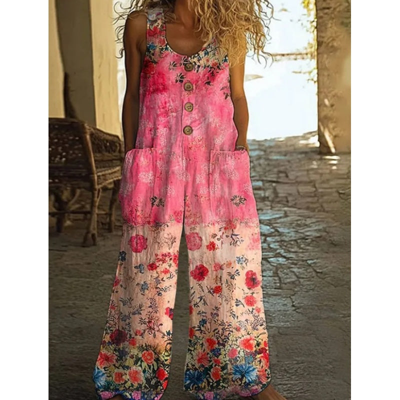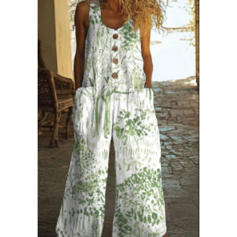 WYGODNA KONSTRUKCJA BEZ RĘKAWÓW I SZEROKIE NOGAWKI ZAPEWNIAJĄ PRZEWIEWNOŚĆ: Krój bez rękawów i szerokie nogawki zapewniają maksymalny komfort i przewiewność, dzięki czemu ten kombinezon jest idealny na ciepłe dni. Lekki materiał pozwala na nieskrępowane ruchy, a szerokie nogawki tworzą swobodną, artystyczną sylwetkę, która pasuje do każdego typu ciała.
