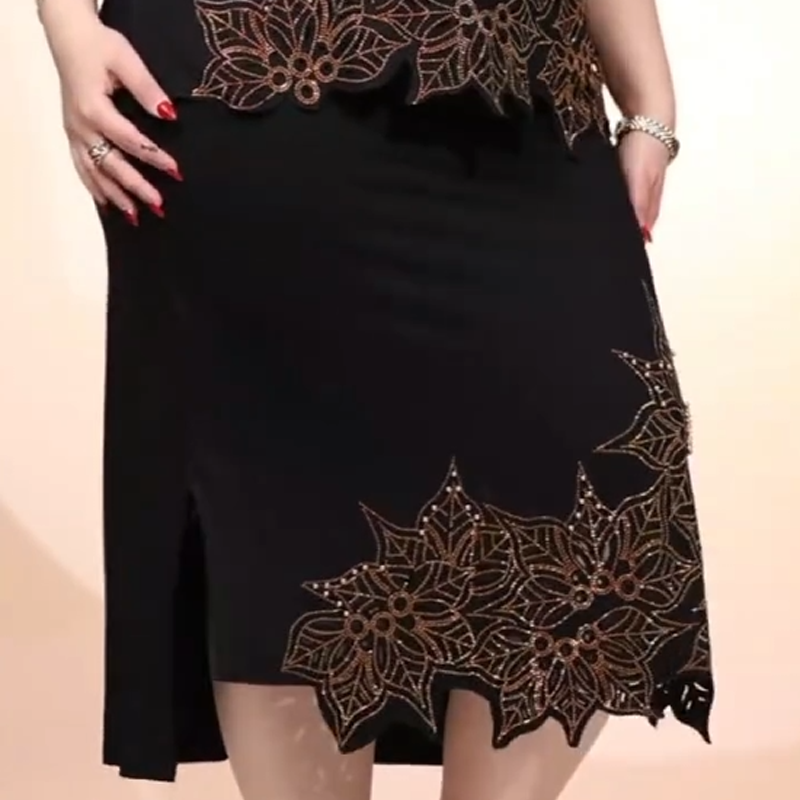 KWIATOWY HAFT: Delikatny kwiatowy haft zdobi boki spódnicy, dodając jej ręcznie wykonanego kunsztu. Każdy ścieg zwiększa atrakcyjność wizualną sukienki, łącząc elegancję z misternym wzornictwem.