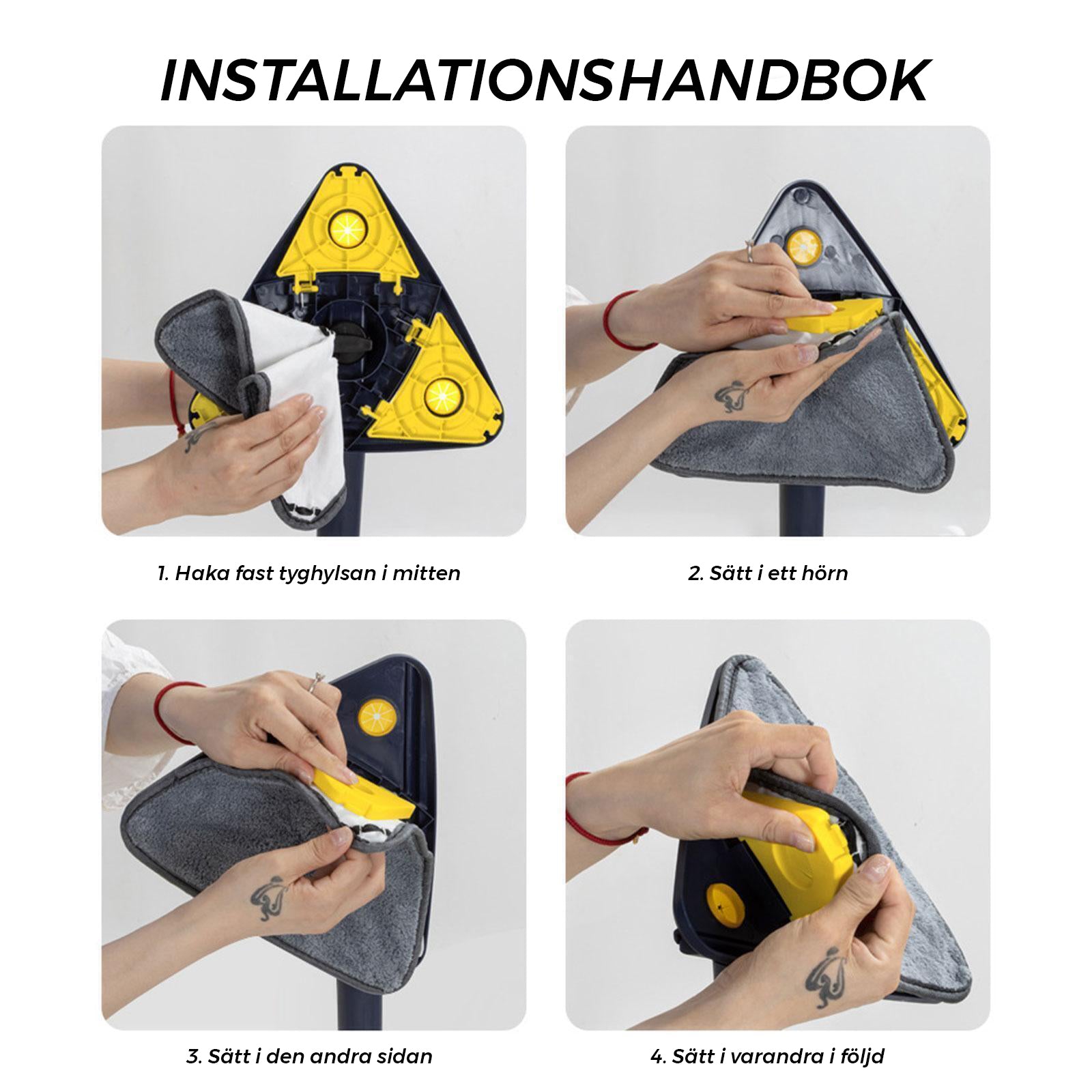 Dzięki innowacyjnej trójkątnej konstrukcji płyty czyszczącej obrotowa głowica mopa 360° bez wysiłku usuwa kurz z trudno dostępnych narożników, dokładnie usuwając uporczywy brud z krawędzi ścian, powierzchni sufitów i wnęk okiennych.