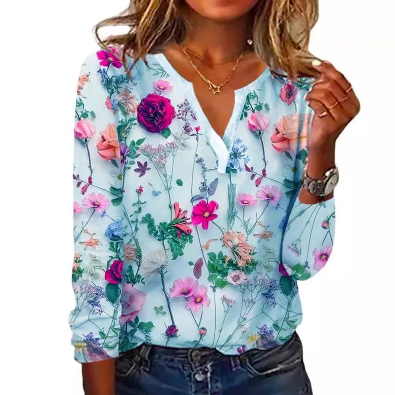 💐Elegancka bluzka z długimi rękawami i kwiatowym nadrukiem