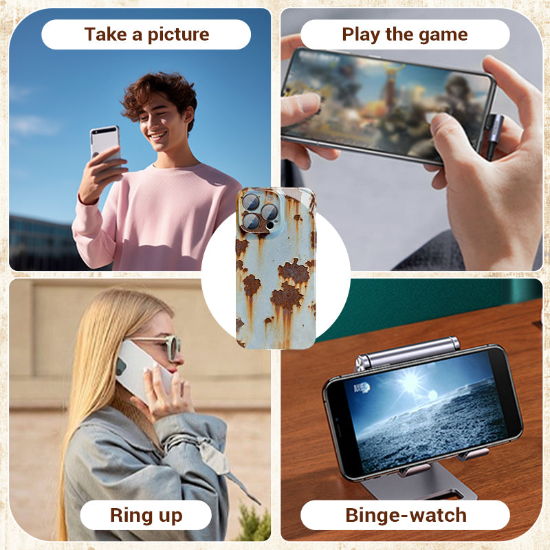 UNIKALNY RDZAWY WYGLĄD - To etui ma autentyczny rdzawy wygląd, który naśladuje zwietrzały metal i natychmiast nadaje telefonowi industrialny wygląd vintage. Artystyczne wykończenie dodaje wizualnej głębi, a jednocześnie pozostaje gładkie w dotyku.
