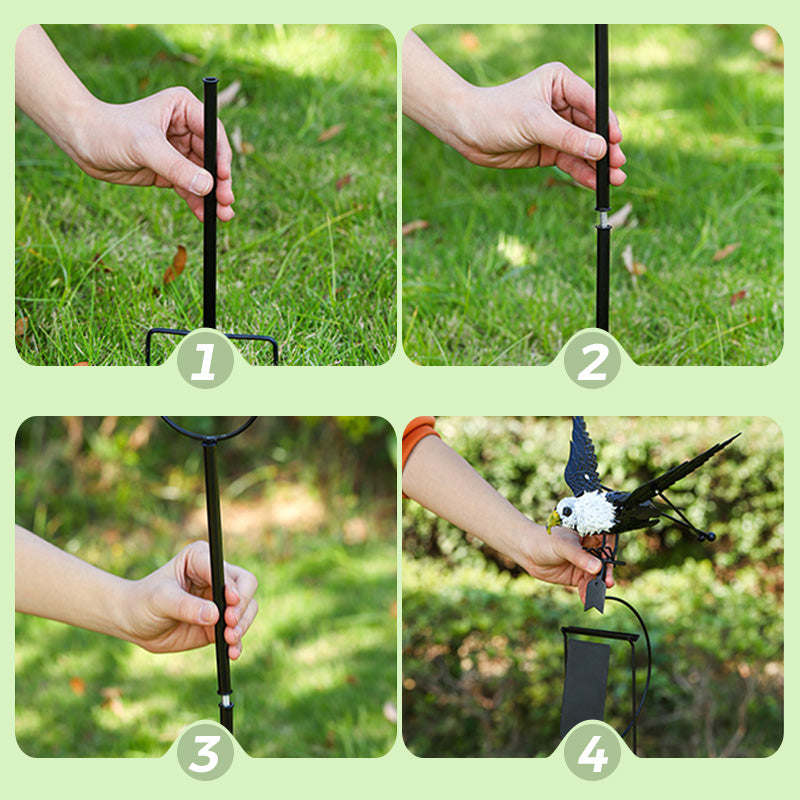 DYNAMICZNY ODSTRASZACZ PTAKÓW - Unikalny kształt orła naśladuje drapieżniki w naturze, skutecznie odstraszając niechcianych gości. Delikatnie kołysze się na wietrze, tworząc dynamiczny ruch, który wzmacnia efekt odstraszający, naśladując rzeczywiste zachowania drapieżników.
