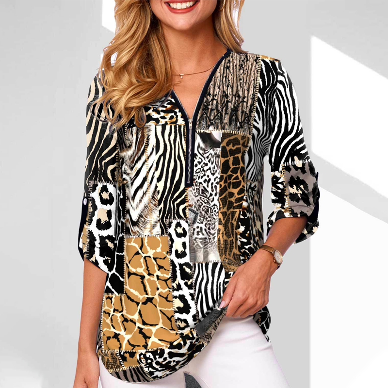 Pakiet zawiera:1* Damski top z nadrukiem V-Neck z zamkiem błyskawicznym