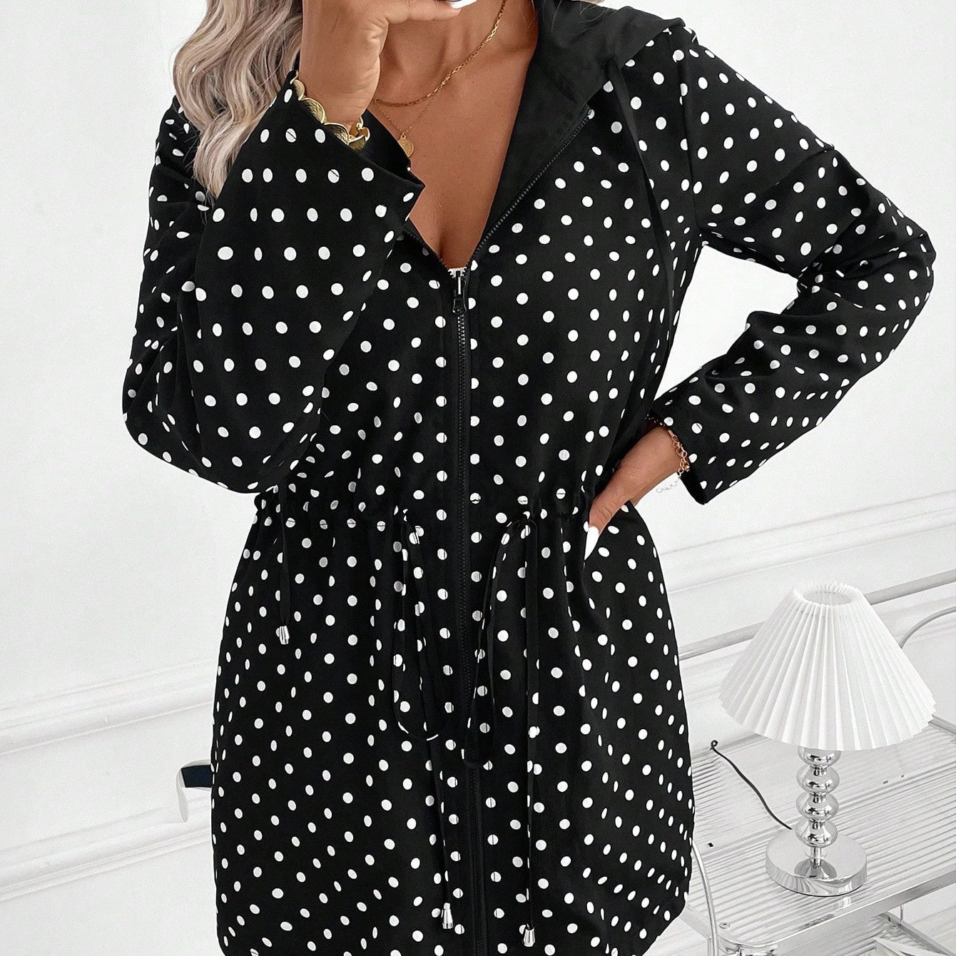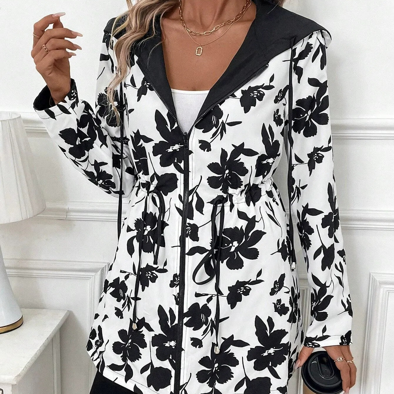 Pakiet zawiera:1* Damska dwustronna kurtka z kapturem na zamek błyskawiczny