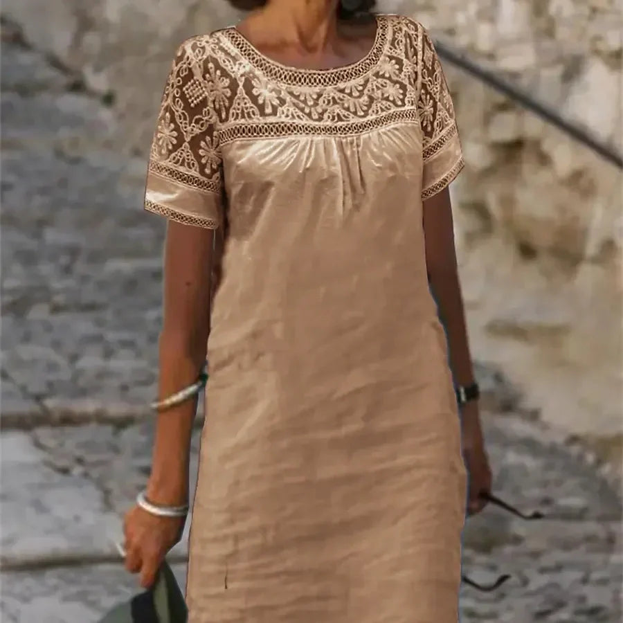 Oddychająca, lekka tkanina: Wykonana z miękkiej, lekkiej tkaniny, ta sukienka jest oddychająca i wygodna w noszeniu, idealna na ciepłe dni i luźne okazje.