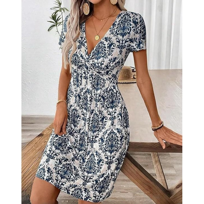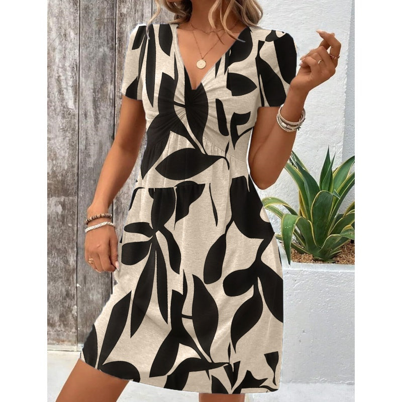 KRÓTKI RĘKAW DLA KOMFORTU PRZEZ CAŁY DZIEŃ: Krój z krótkim rękawem zapewnia przewiewność i swobodę ruchów, dzięki czemu ta sukienka jest idealna na ciepłe dni lub zajęcia w pomieszczeniach. Lekka tkanina zapewnia chłód i wygodę, niezależnie od tego, czy uczestniczysz w przyjęciu w ogrodzie, kolacji czy swobodnym spotkaniu z przyjaciółmi.