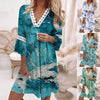Opakowanie zawiera 1 * damską sukienkę z nadrukiem w kształcie litery V