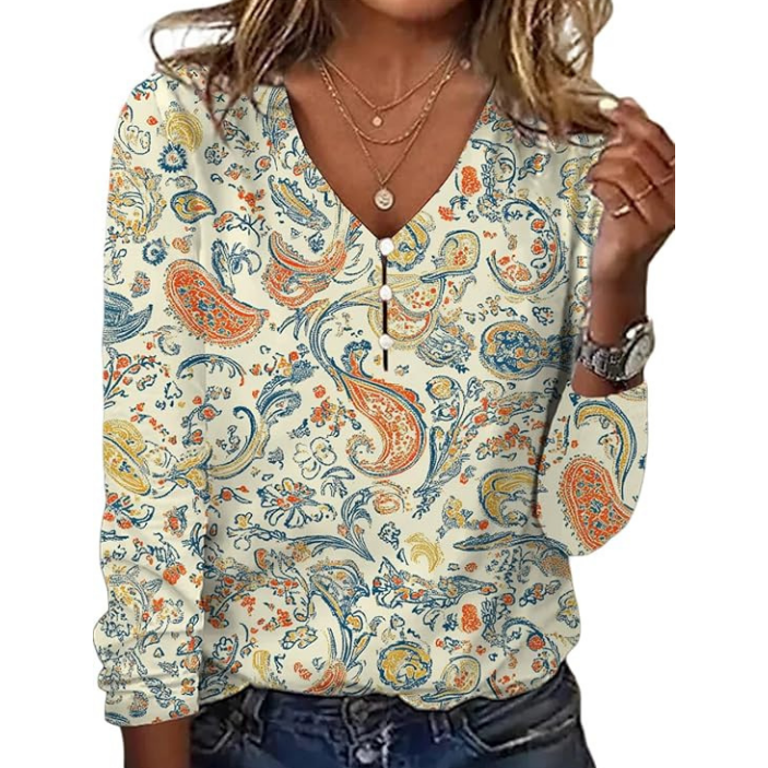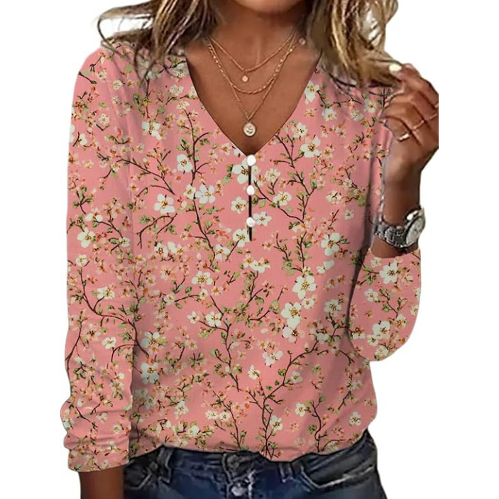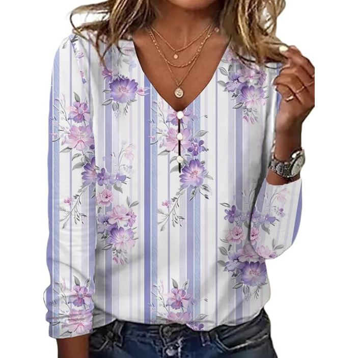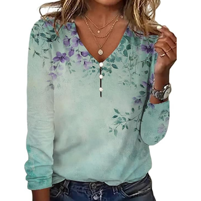 💐Damska koszulka z długim rękawem z nadrukiem V-Neck