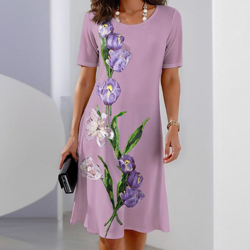 💖Sukienka z krótkim rękawem i okrągłym dekoltem