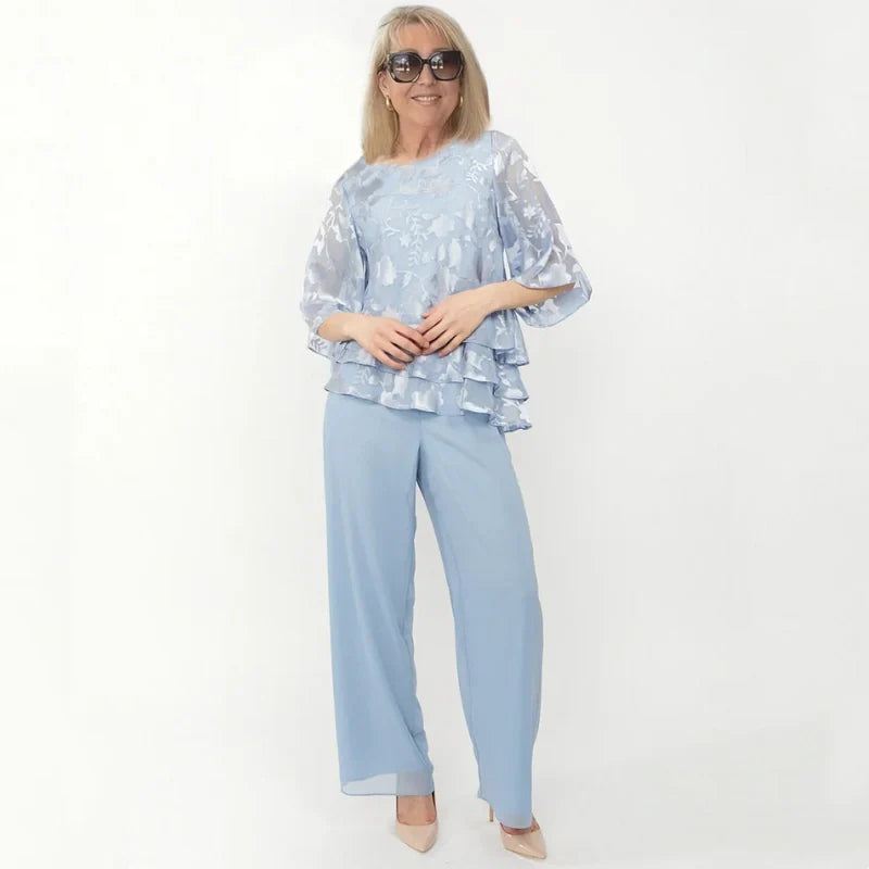 Opakowanie zawiera 1 * Elegancki damski warstwowy top i zestaw spodni z szerokimi nogawkami